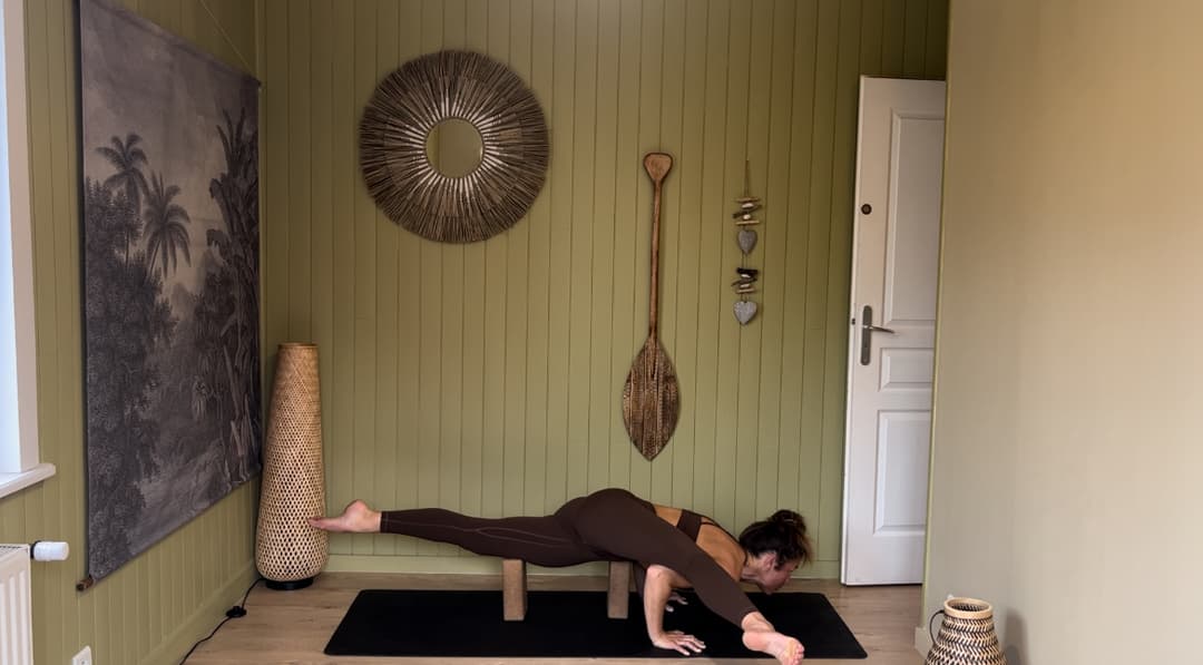 Bienvenue dans ce Programme pour apprendre les 13 Arm-balances phare du Yoga. Ce programme est dédié à tous ceux qui souhaitent se challenger, changer de perspective et découvrir l’équilibre sur les mains. Cette septième cours de 60min vous permettra de travailler avec des exercices ciblés pour préparer le corps à la pratique des arm-balances et explorer le tout septième arm-balance : Eka Pada Koundiyasana 2. Il s'agit d'un arm-balance avec les jambes en écart comme des ciseaux en ouverture de hanche. Je vous invite à utiliser les blocs pendant le cours, qui vous aideront pour travailler vos postures. A travers une échauffement du corps avec un flow pour préparer le corps intelligemment, poser les fondations, intégrer les premiers arms-balances (bakasana, side bakasana, transition tripod - bakasana, eka hasta bhujasana), renforcer votre force avec des exercices spécifiques pour travailler votre centre, explorer les torsions et étirer les jambes, je vous guide step by step pour explorer Eka pada Koundinyasan 2.